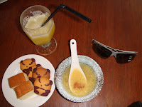 一早的牡丹灣天氣很舒服,秋高氣爽,和在墾丁看到大飯店的人潮相比,雖然没有BUFFER各式各樣的早餐,但整個與世無爭的氣息及養生的早餐,我本人會選擇HERE,早上可以選擇戶外泳池和温泉,單車,或悠閒借釣竿釣釣魚,服務人員說一定會釣到魚,只是釣竿没有回勾,釣到魚要記得再放生,甚至放空也很棒.精緻養生早餐--野菜粥,鹽烤飛魚,剌蔥葉煎蛋,蜜紫山地瓜,高纖雜糧麵包,鳯梨蘋果汁,現磨豆漿