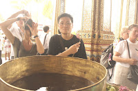 泰國的湄南河流經曼谷市區,湄南河是孕育整在曼谷十王朝的命脈,河岸兩旁五星級飯店鄰立,花40泰銖坐船可以一覽湄南河風光,船上有導覽員用英文介紹湄南河兩岸名勝古蹟,這次我們搭船遊湄南河到曼谷必遊景點"大皇宮"。